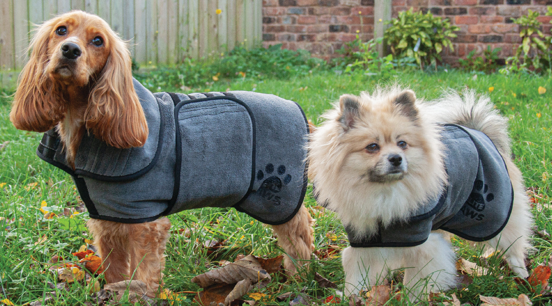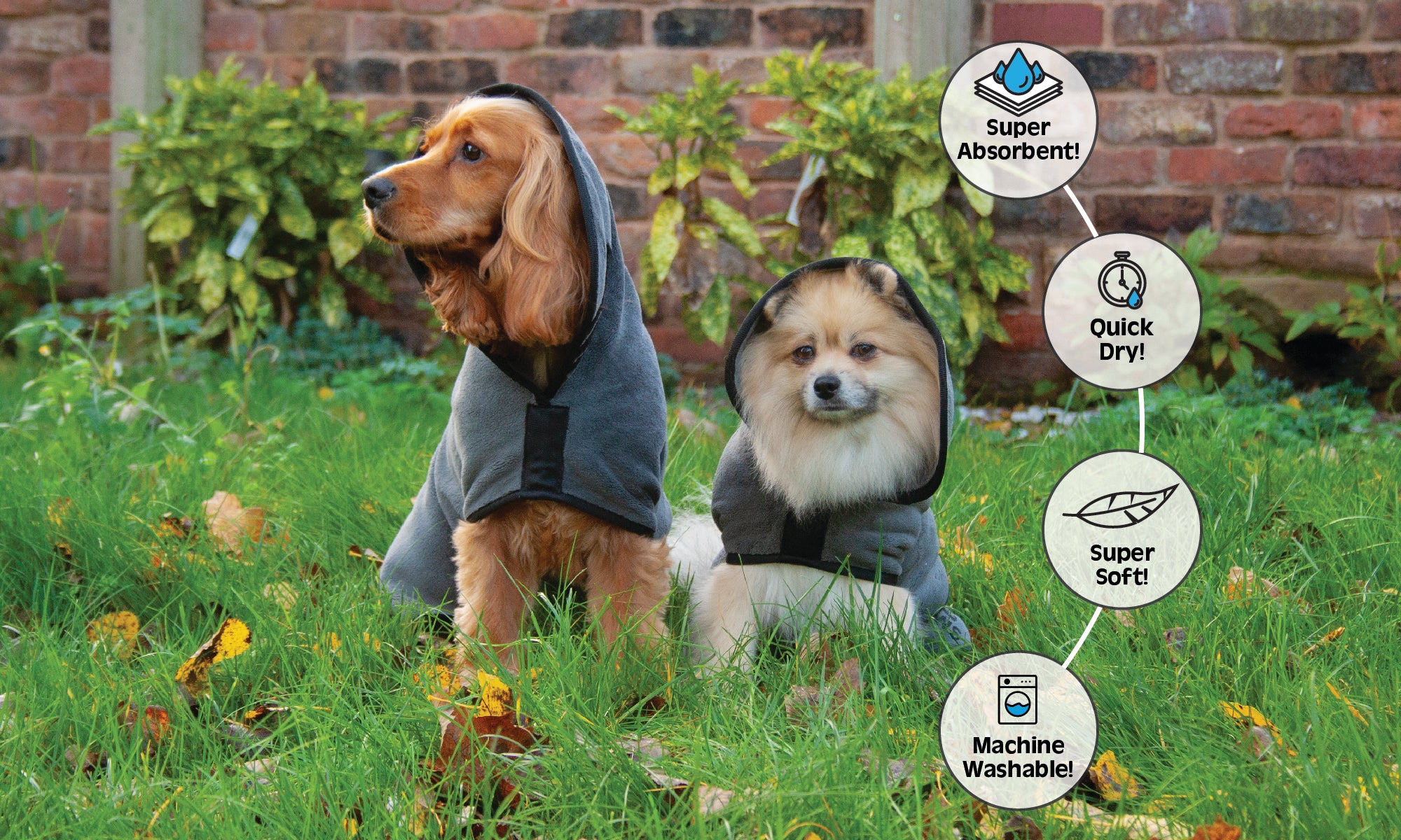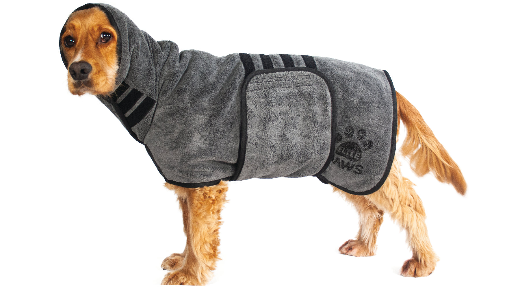 We believe the Elite Paws robe is ideal - it’s easy to put on, highly absorbent, and made to fit a wide range of breeds with our practical grey design.