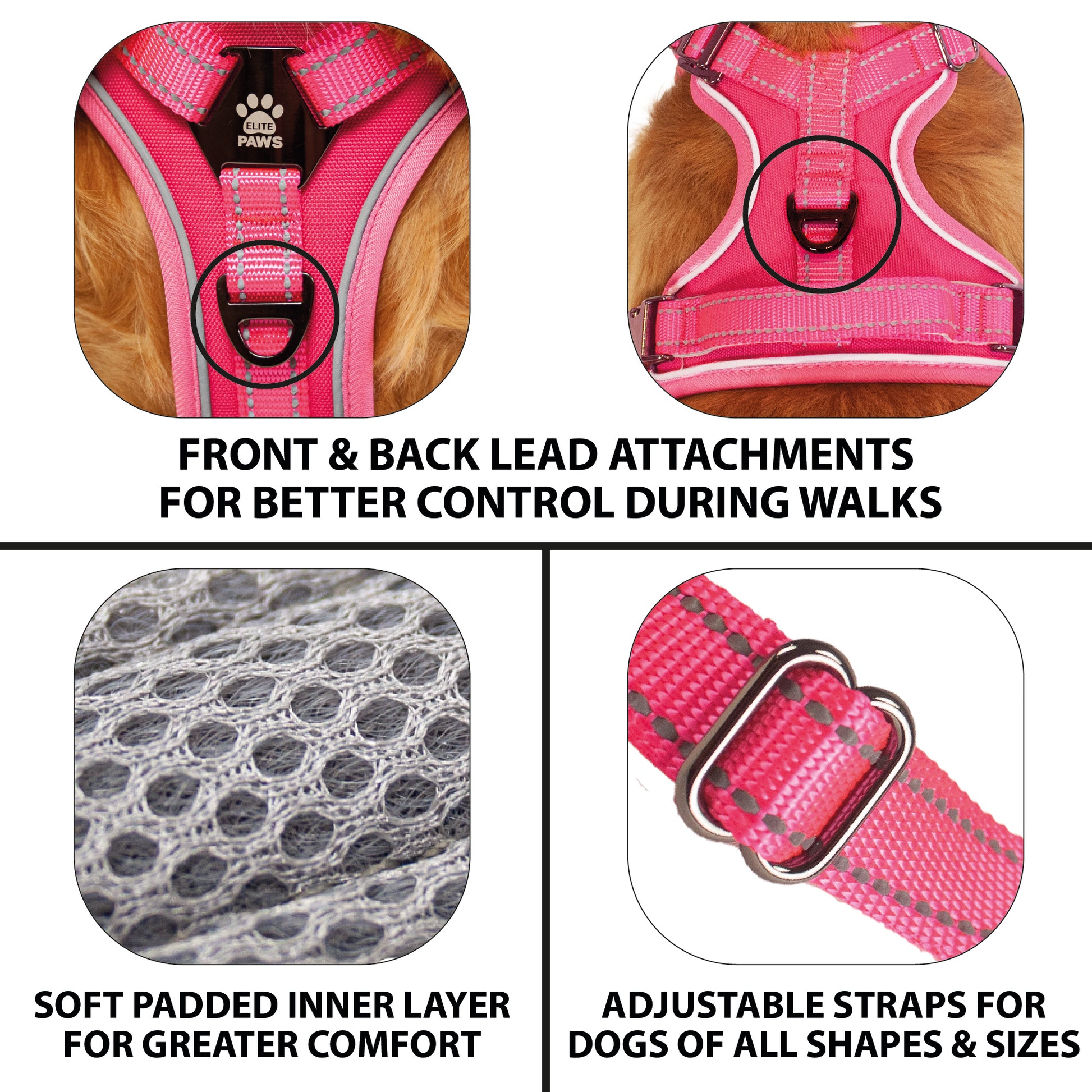 5. Tailored Comfort: Adjustable sizing and thoughtful design ensure optimal fit and comfort for your pet, preventing discomfort during long walks and runs.