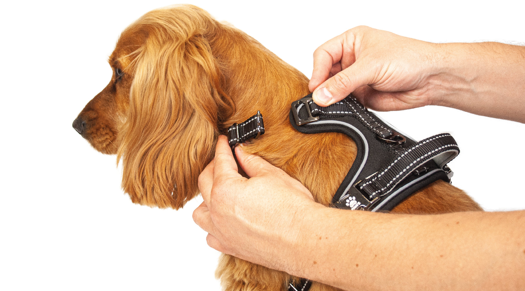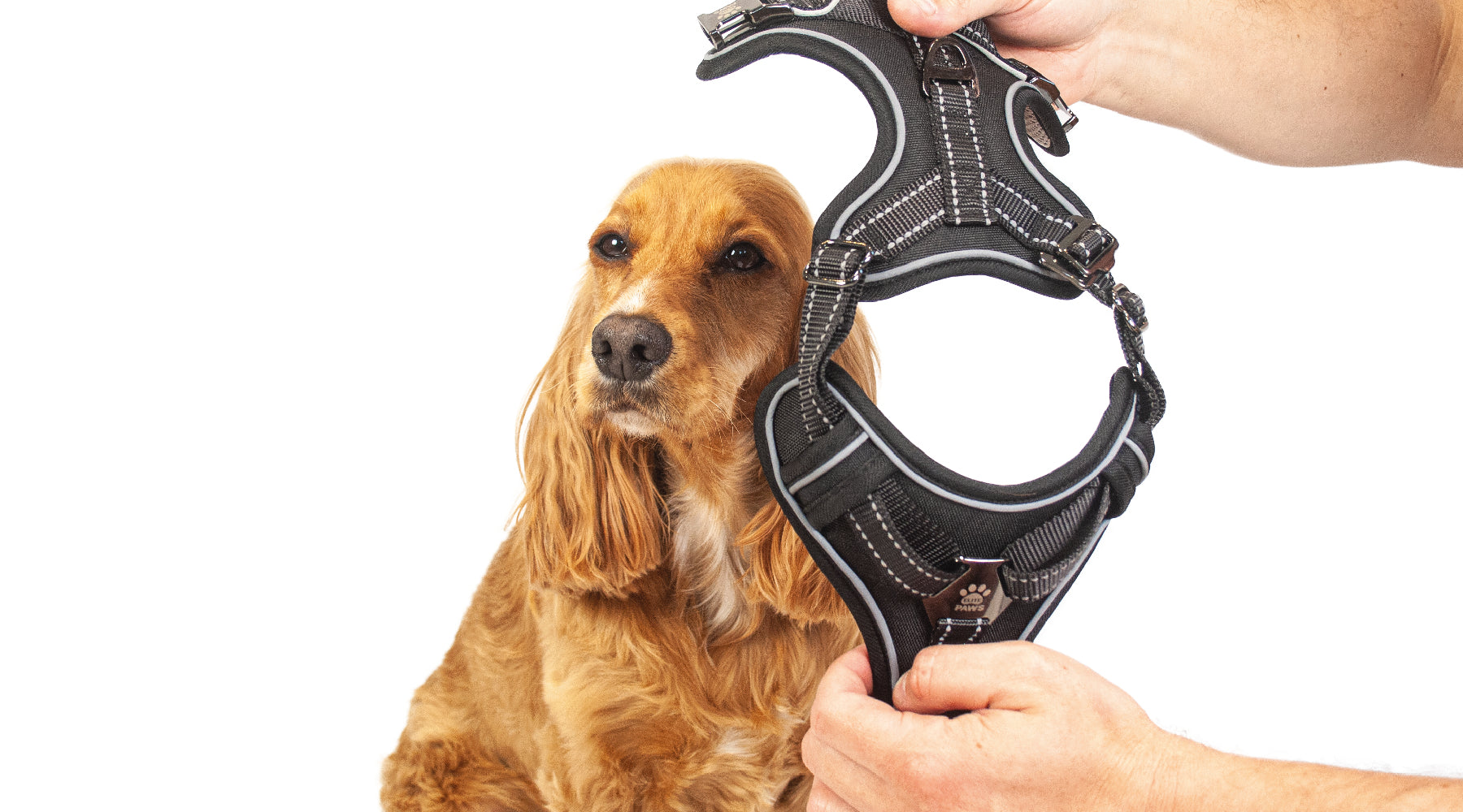 Hey, I'm Nala! A cute cocker spaniel from Cheshire, and proud model for Elite Paws. Here I am, showing off my favourite durable, METAL BUCKLE harness!